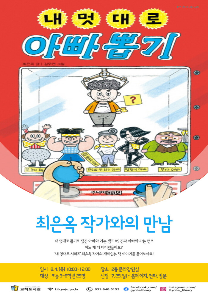 이현주 교하도서관장은 “이번 여름방학 프로그램을 통해 어린이들이 가족과 즐거운 추억을 쌓으며, 책과 친해지고 도서관을 가까이하는 계기가 되길 바란다”고 말했다.