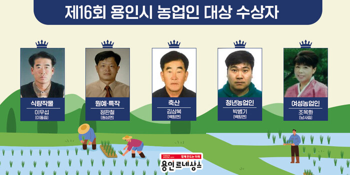 [로컬세계=김병민 기자]경기 용인특례시는 식량작물, 원예.특작, 축산, 청년농업인, 여성농업인 등 5개 부문의 제16회 농업인대상 수상자를 선정했다고 23일 밝혔다.