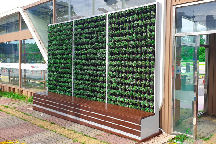 ▲수지구 동천역 버스환승센터 벽면에 설치된 수직 정원 |