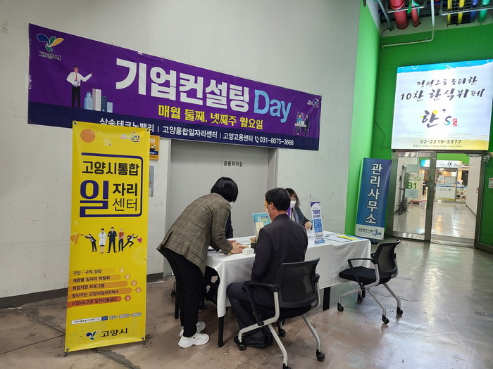 ▲ 찾아가는 더잡(JOB) 고양일자리발굴단이 지식산업센터에서 상담을 진행하고 있다. 고양시 제공 |