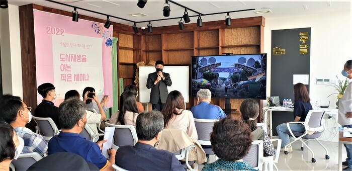 [로컬세계 = 이영원 기자]경기 파주시는 지난 28일 EBS연풍길 연풍마루에서 ‘도시재생&문화축제&주민공동체 그리고 지속가능성에 대하여’라는 주제로 ‘2022년 제3회 도시재생을 여는 작은 세미나’를 개최했다고 30일 밝혔다.