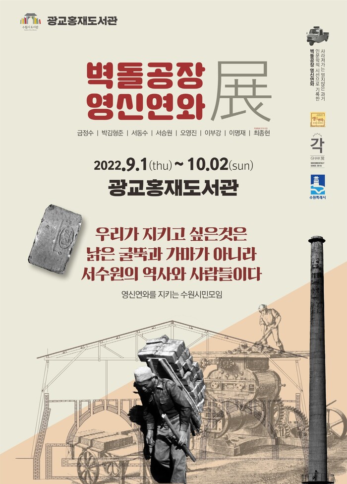 수원시에 남은 유일한 근현대 산업 유산인 ‘영신연와 벽돌공장’(권선구 고색동 887-19번지)의 가치와 의미를 알리는 전시회다. 영신연와 벽돌공장의 사진과 그림, 영상 작품 등을 볼 수 있다.