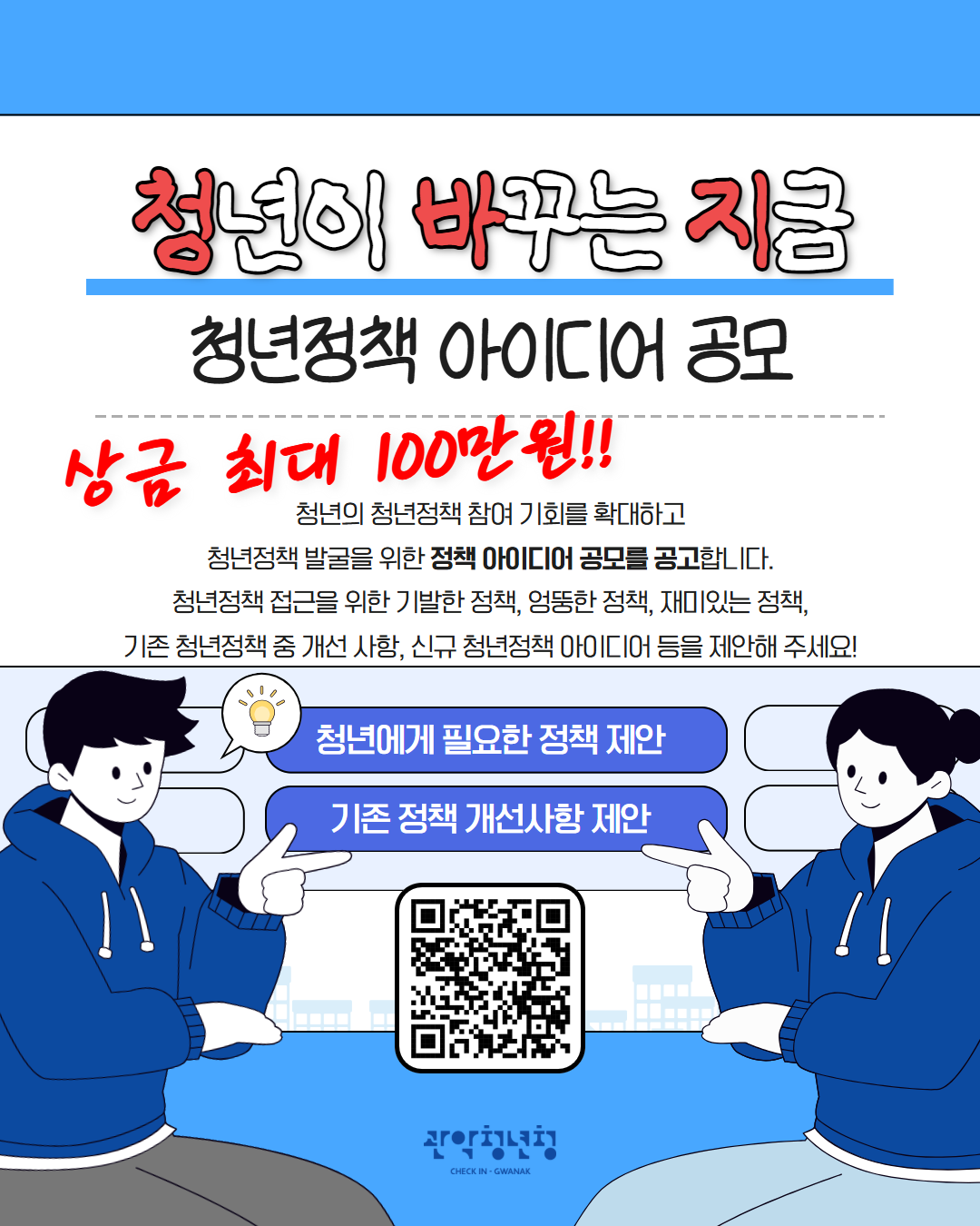 특히 ‘청년정책 아이디어 공모전’은 청년이 직접 제안한 정책을 현장에서 발표하고, 방문객 투표와 평가를 통해 우수 정책을 선정한다. 최우수 제안에는 상금 100만 원이 주어지며, 우수 제안은 관악구 정책 검토 과정과 연계될 예정이다.