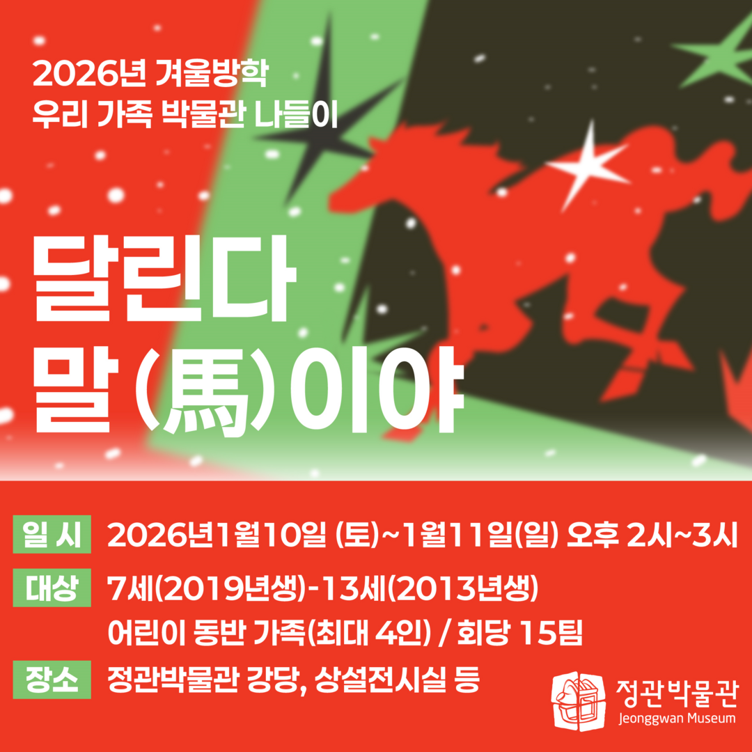 [로컬세계 = 맹화찬 기자]부산시립박물관 소속 정관박물관이 2026년 병오년(붉은 말의 해)을 앞두고 내년 1월 10~11일 이틀간 겨울방학 가족 교육프로그램 ‘겨울방학 우리 가족 박물관 나들이–달린다 말이야’를 운영한다.