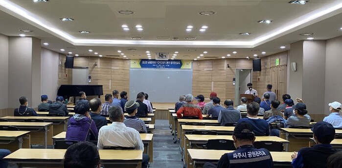 [로컬세계 = 이영원 기자]경기 파주시는 지난 9일 문산행복센터 소공연장에서 공원녹지분야 현장 종사자 46명을 대상으로 2분기 정기안전교육을 실시했다고 밝혔다.