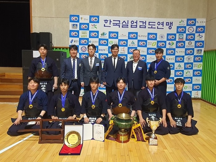 ▲용인시청 직장운동경기부 검도팀이 ‘제7회 한국실업연맹회장배 전국검도실업검도대회’ 남자부 단체전에서 우승을 거뒀다. |