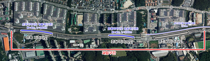 기존 소음저감대책인 방음벽이나 방음터널의 경우 공사비가 약 10배에 달하는 데다 도시미관, 조망권을 침해하는 문제가 발생할 수 있다.
