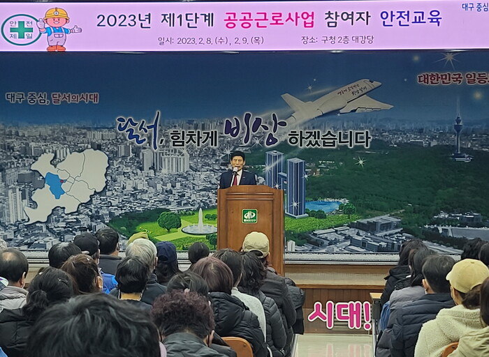 [로컬세계=박세환 기자] 대구 달서구는 지난 8~9일 양일간 구청 2층 대강당에서 2023년 1단계 대구형 희망플러스 일자리사업(공공근로사업) 참여자 300명을 대상으로 안전보건교육을 실시했다고 10일 밝혔다.