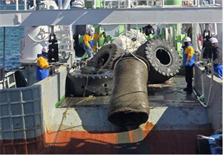 전문 잠수부가 침적 폐기물을 수거한 후 시 해양환경관리선(503호)으로 인양하여 폐타이어를 비롯한 20톤(t)가량의 폐기물을 처리하는 성과를 올렸다.