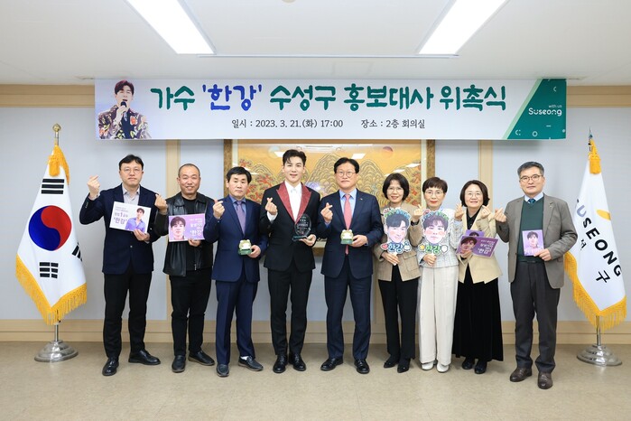 지난 21일, 수성구는 구청 회의실에서 김대권 수성구청장을 비롯해 간부 공무원 등이 참석한 가운데 가수 ‘한강’을 홍보대사로 위촉하고 위촉패를 전달했다.