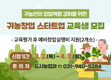 [로컬세계 = 이영원 기자]경기 파주시는 신규농업인(귀농인)의 창업역량 강화 및 농업기술 기반형 일자리 창출을 위해 ’2023년 귀농창업 스타트업 교육‘ 교육생을 4월 3일까지 추가 모집한다고 밝혔다.