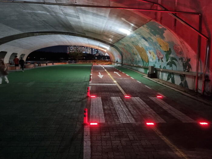 한편 어린이 보호구역과 유동인구가 많은 횡단보도 진입부에는 보행자의 안전을 위해 LED 바닥 신호등을 설치한다.