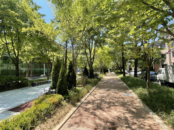 오마·화정초등학교 사잇길은 지난 6월 보행자도로 환경개선사업의 일환으로 녹지 공간을 확충하고 오래된 시설물을 교체해 새 단장을 마쳤다.