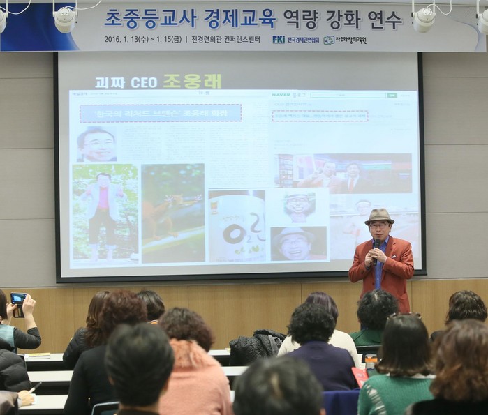 [로컬세계 오영균 기자] 맥키스컴퍼니 조웅래 회장이 13일 전국경제인연합회에서 주관하는 ‘2016 동계 경제교육 역량 강화 연수’ 프로그램에서 전국 초중등 교사 160명을 대상으로 ‘역발상을 다시 역발상하라’는 주제로 강연을 펼쳤다.