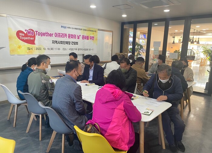 [로컬세계 = 이영원 기자]경기 파주시(시장 김경일)는 지난 18일 ‘We Together 아프리카 문화의 날’ 추진을 위한 법원읍 지역사회단체장 간담회를 진행했다.