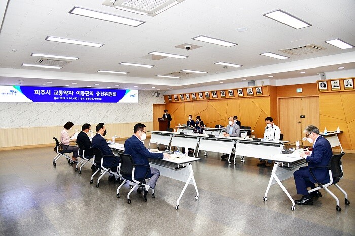 [로컬세계 = 이영원 기자]경기 파주시는 26일 파주시청 대회의실에서 2022년 교통약자 이동지원서비스 개선안과 파주시 지방교통약자 이동편의 증진계획 용역안 심의 자문을 위해 고광춘 부시장 주재로 ‘교통약자 이동편의 증진위원회’를 개최했다고 30일 밝혔다.
