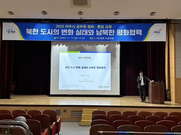 서병권 파주시 평화협력과장은 “이번 교육을 통해 파주시 공직자들이 북한을 바로 알고 평화통일에 대해 생각해 볼 수 있는 기회가 되길 바란다”며 “앞으로도 평화공존 분위기 확산을 위해 다양한 교육들을 추진하겠다“고 말했다.