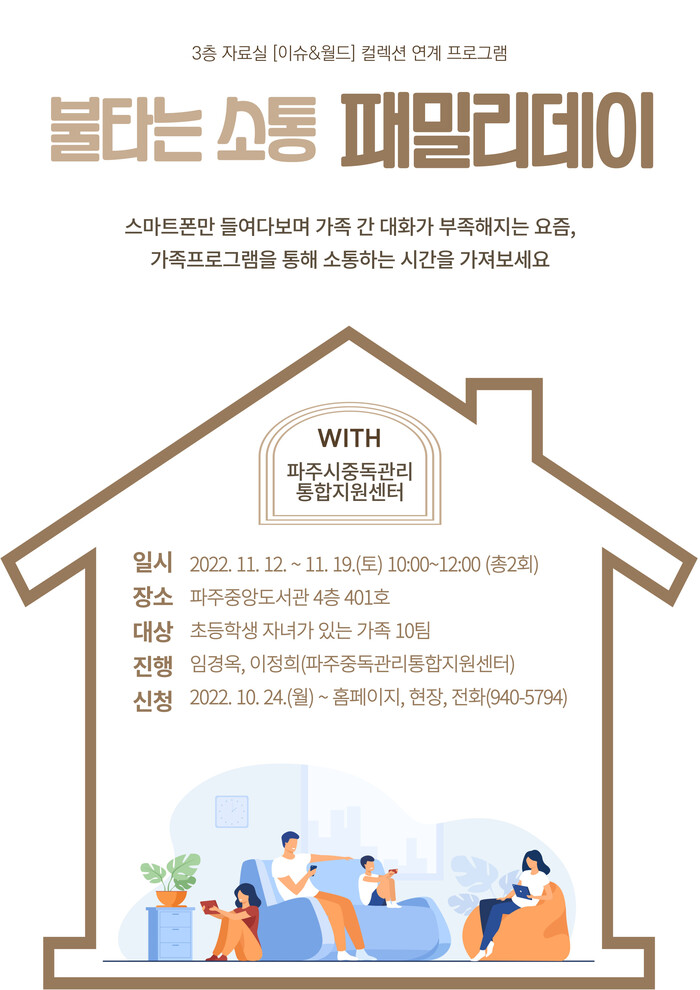 [로컬세계 = 이영원 기자]경기 파주중앙도서관은 오는 12일부터 19일까지 ‘불타는 소통 패밀리데이’를 운영한다.