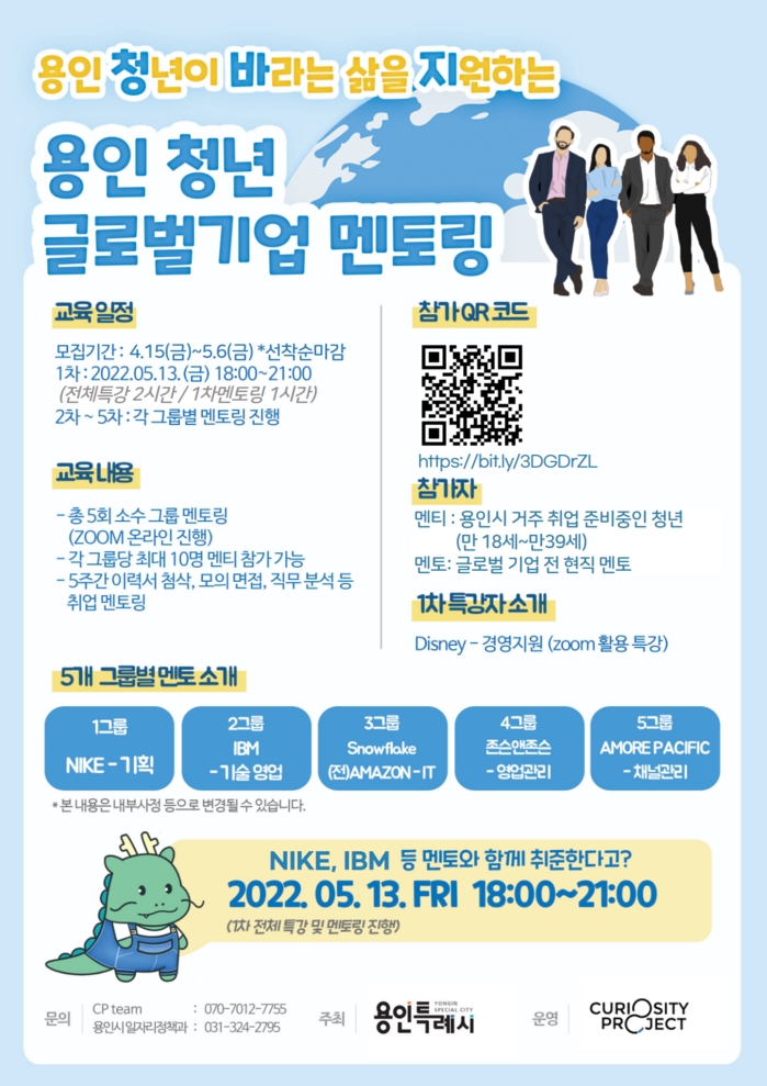 [로컬세계 김병민 기자]경기 용인시가 글로벌 기업 취업을 희망하는 청년 구직자들을 위해 현직 전문가들로부터 직무 정보를 얻을 수 있는 ‘글로벌 기업 멘토링’ 참여자를 모집한다.