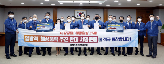 이 같은 일방적 해상풍력추진 과정의 병폐를 해소하고 어업피해 최소화와 어업인 권익보호를 위한 정책마련·시행을 촉구하기 위해 전국 어업인들은 해상풍력 대책위원회를 결성해 대응에 나선 상태다.