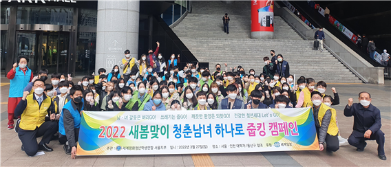 [로컬세계 고기훈 기자]세계평화청년학생연합(YSP) 서울·인천지부(회장 변중호)는 지난 27일 용산역 광장 주변에서 ‘2022 새봄맞이 청춘남녀 하나로 줍킹 캠페인’을 개최했다고 밝혔다.