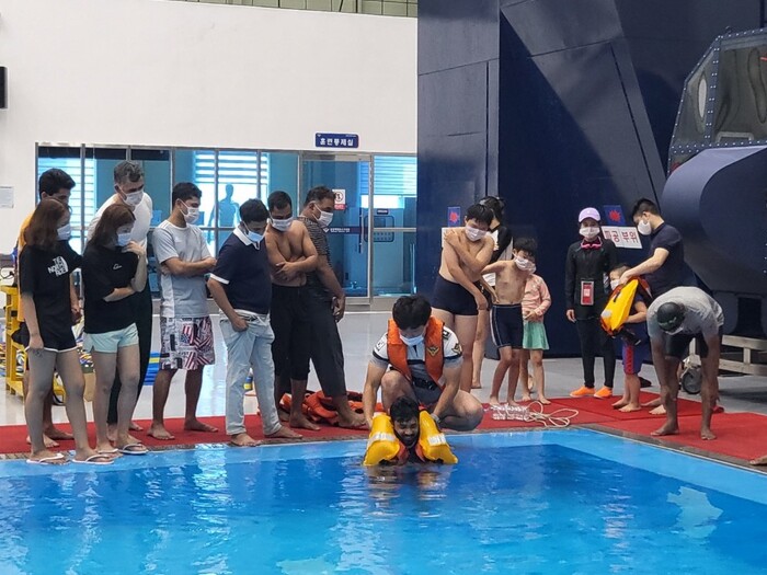 [로컬세계 부산=맹화찬 기자]중앙해양특수구조단은 여름 휴가철을 맞아 14일 부산지역 거주 이주민을 대상으로 '해양안전교실'을 열었다고 15일 밝혔다.