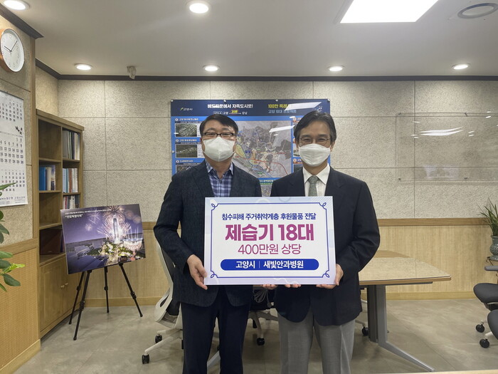[로컬세계 = 이영원 기자]경기 고양특례시(시장 이동환)는 지난 25일 새빛안과병원(병원장 박수철)이 침수피해 주거취약계층을 위해 400만원 상당의 제습기를 후원해 전달식을 가졌다고 26일 밝혔다.