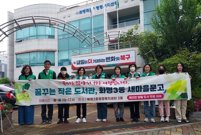 화명3동 새마을문고는 화명3동 행정복지센터 2층에서 ‘꿈꾸는 작은 도서관’을 평일 13~17시 운영 중이며, 깨끗한 양질의 도서를 무료로 대여하고 있다.