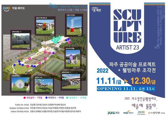 파주를 삶과 창작의 터전으로 삼고 있는 23명의 조각가들이 참여해 위드 코로나 시대에 지쳐있는 시민들에게 긍정적 에너지를 주고 치유의 장이 되도록 파주 웰빙마루에 미술사적 의미가 있는 조각작품을 설치했다.