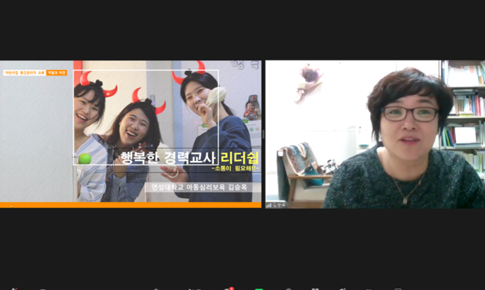 ▲ 김승옥 연성대학교 사회복지과 아동심리보육전공 교수가 강사로 비대면 온라인 교육을 실시했다. 파주시 제공 |