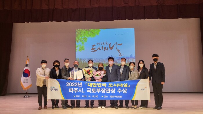 [로컬세계 = 이영원 기자]경기 파주시(시장 김경일)는 지난 18일 ‘2022년 대한민국 도시대상’ 시상식에서 지원체계부문 중소도시 1위 지자체로 선정돼 국토부장관상을 수상했다고 밝혔다.