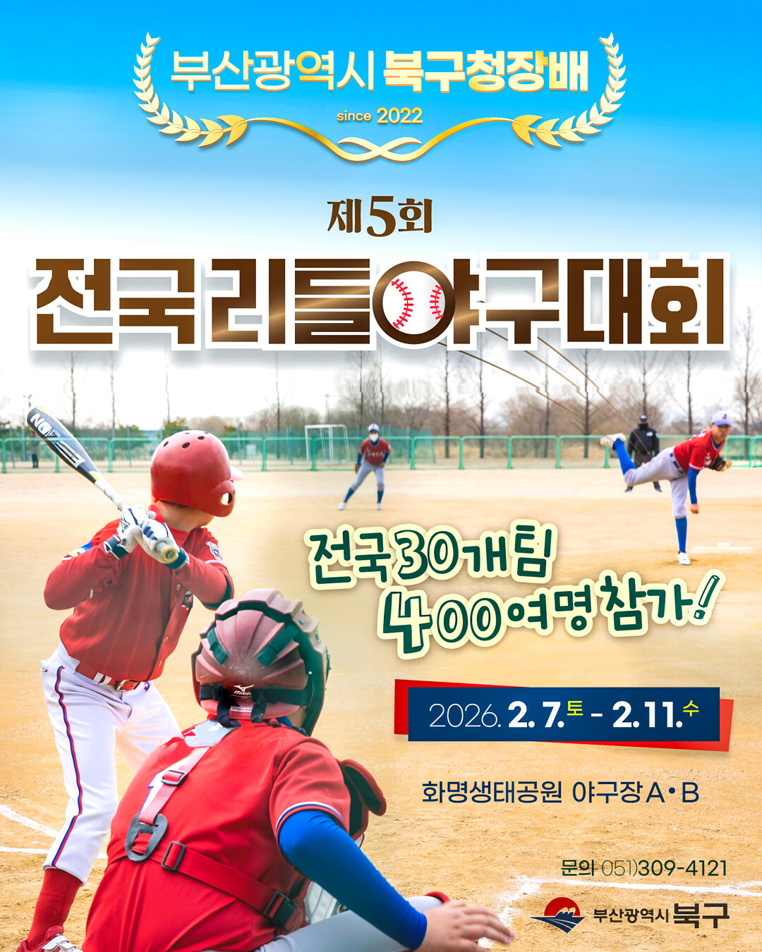 [로컬세계 = 김의준 기자] 부산 북구는 오는 7일부터 11일까지 5일간 화명생태공원 P3 유소년야구장과 P5 성인야구장(B)에서 ‘제5회 부산광역시 북구청장배 전국리틀야구대회’를 개최한다고 1일 밝혔다.