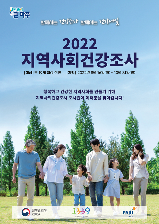 [로컬세계 = 이영원 기자]경기 파주시(시장 김경일)는 오는 16일부터 10월 31일까지 책임대학교인 서울대학교와 함께 지역사회건강조사를 한다고 11일 밝혔다.