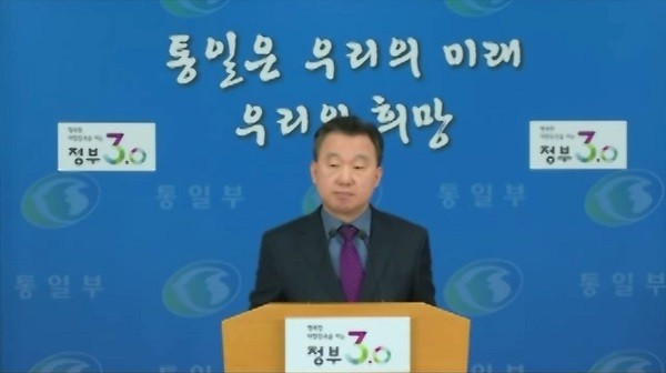 ▲ 정준희 통일부 대변인이 지난 11일 오전 정례브리핑을 하고 있다.<사진출처=e-브리핑 화면캡처> |