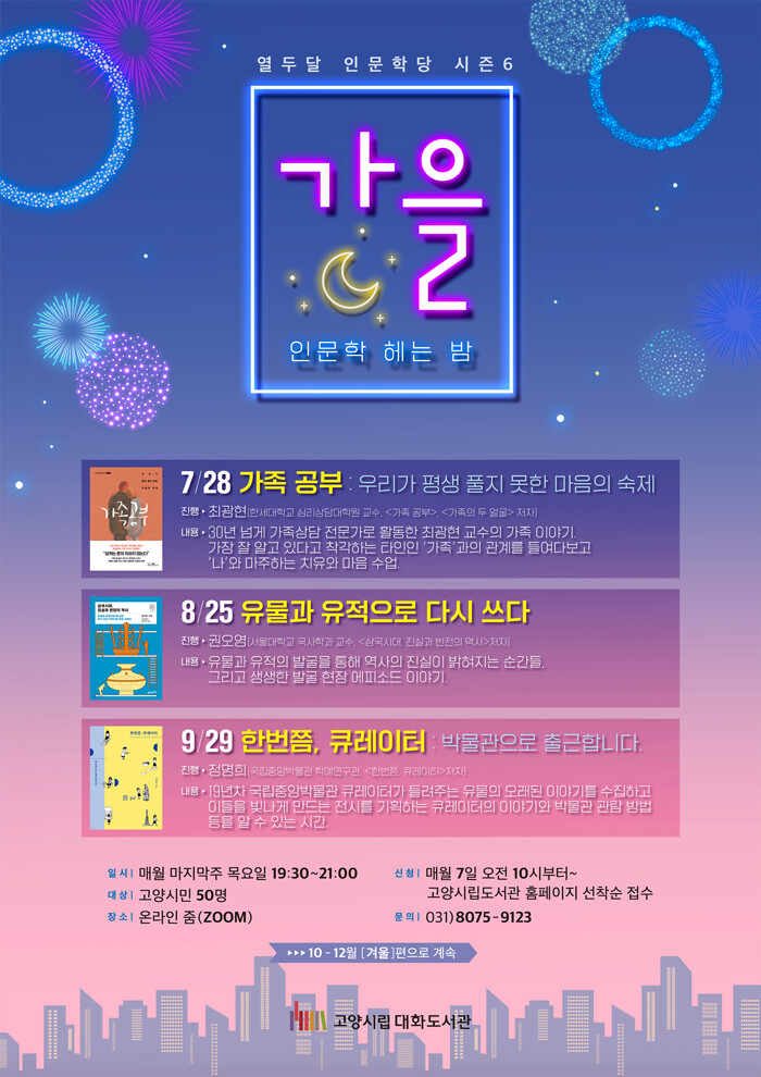 프로그램은 매월 마지막주 목요일 저녁에 진행될 예정이다. 신청은 고양시립도서관 홈페이지에서 가능하다.