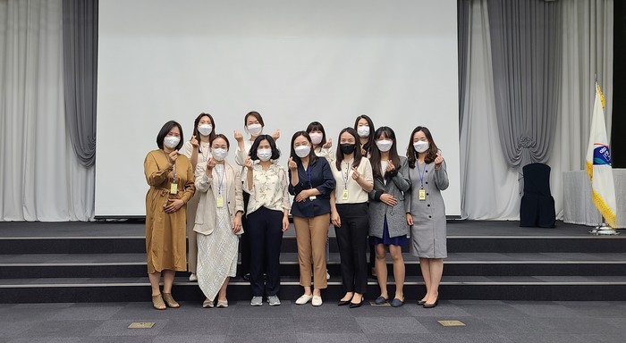 ▲용인시 어린이집 부모모니터링단이 지난 17일 열린 위촉식에서 기념촬영을 하고 있다. 용인시 제공 |