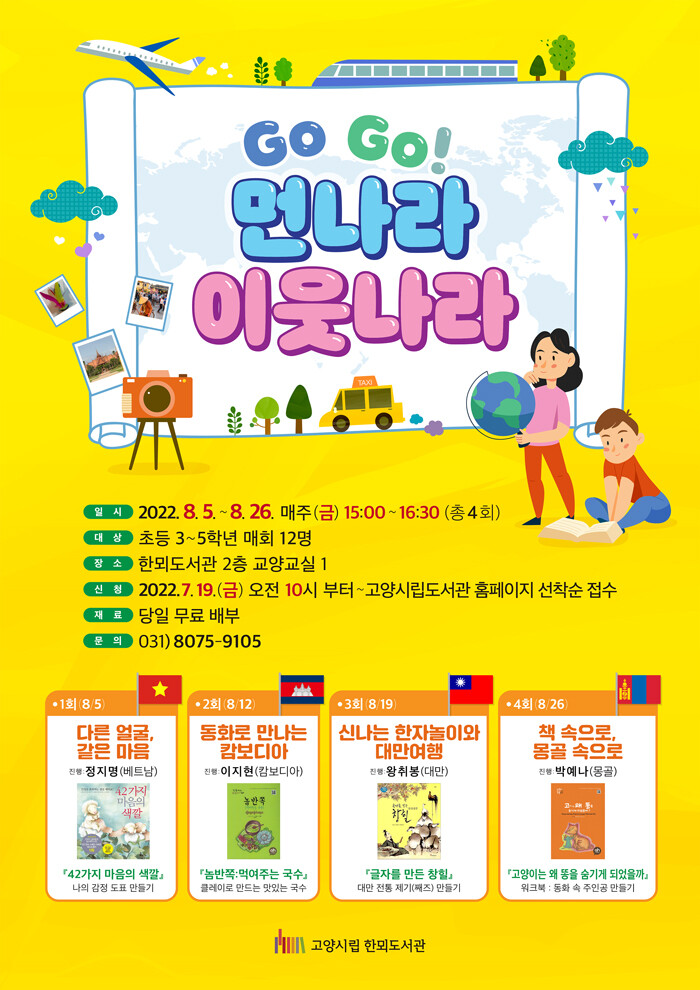 [로컬세계 = 이영원 기자]경기 고양특례시(시장 이동환) 한뫼도서관이 다음달 5일부터 26일까지 다문화 이해교육 'Go Go! 먼나라 이웃나라'을 운영한다.
