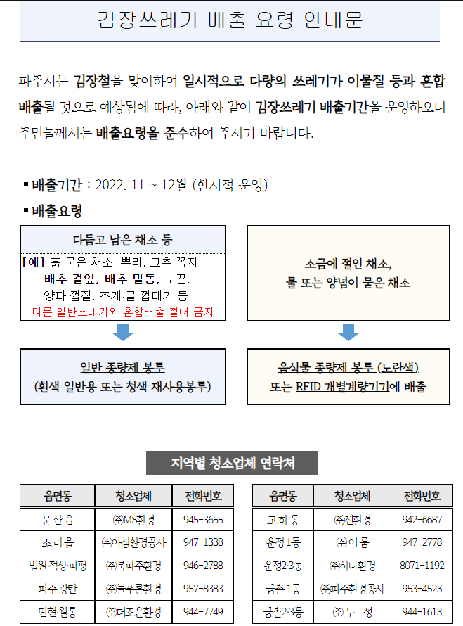 | ▲ ‘김장쓰레기 특별 수거 기간' 운영 안내. 파주시 제공 |