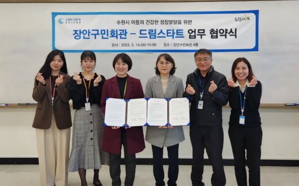 [로컬세계=김병민 기자]경기 수원시 드림스타트와 장안구민회관은 14일 장안구민회관에서 협약을 체결하고, 드림스타트 아동이 학습·문화 프로그램에 참여할 수 있도록 협력하기로 했다.