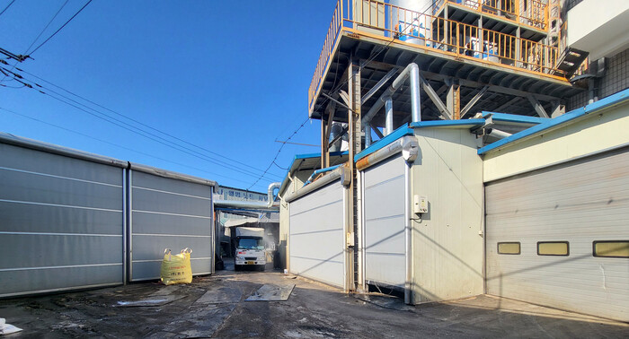 ▲악취방지를 위해 관내 한 도축업체가 스크린도어(밀폐시설)를 설치한 모습. 용인시 제공 |