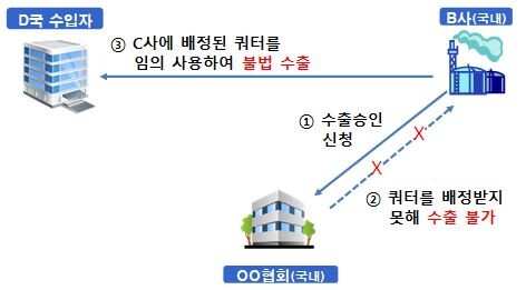 ▲ 사례2(다른 기업 수출 쿼터를 임의로 사용하여 불법 수출) |