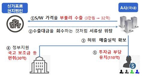 ▲ 사례1(수출가격 부풀리기를 통해 정부지원금 투자금 등 편취) |