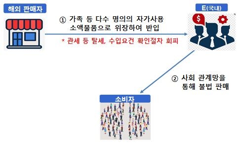 ▲ 사례3(식품 의약품 등의 불법 반입 후 SNS 통한 불법 판매) |