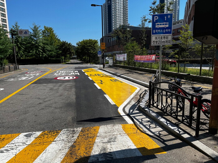 ▲ 신원초 앞에 조성된 어린이승하차구역(Drop-Zone). 고양시 제공 |
