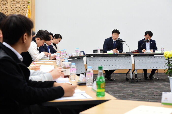 ▲수원시 청년정책위원회 2기 위원장으로 활동한 문상철 희망둥지협동조합 대표(오른쪽 두 번째)가 정기회의에서 발언하고 있다. |
