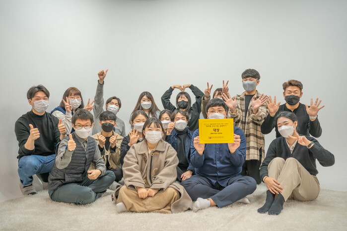 ▲2021년 10월 수원시 워라밸 우수기업 대상을 받은 희망둥지협동조합 직원들이 기념촬영을 하고 있다. |