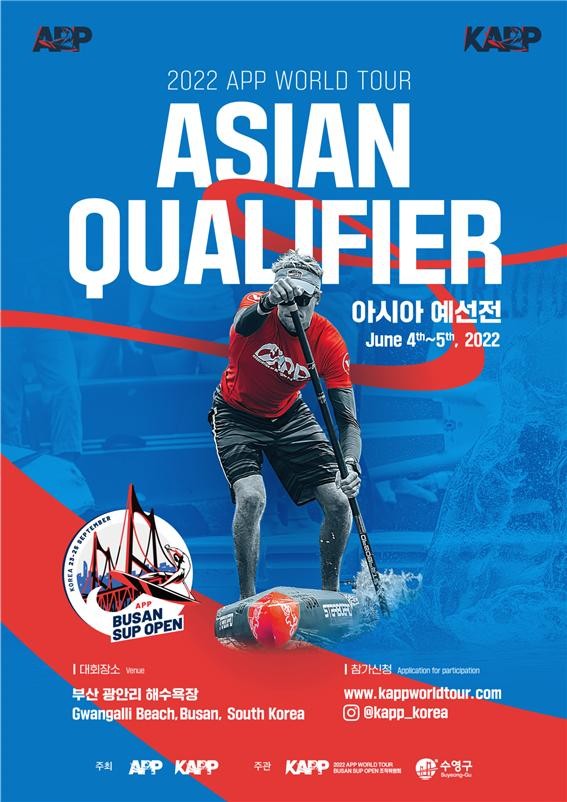 [로컬세계부산=맹화찬기자]부산 수영구는 KAPP(대한패들서프프로협회, 회장 박상현)와 함께 6월 4일~5일 양일간 광안리 해변 SUP ZONE 일원에서 '2022 APP WORLD TOUR 아시아 예선전'을 개최한다고 밝혔다.