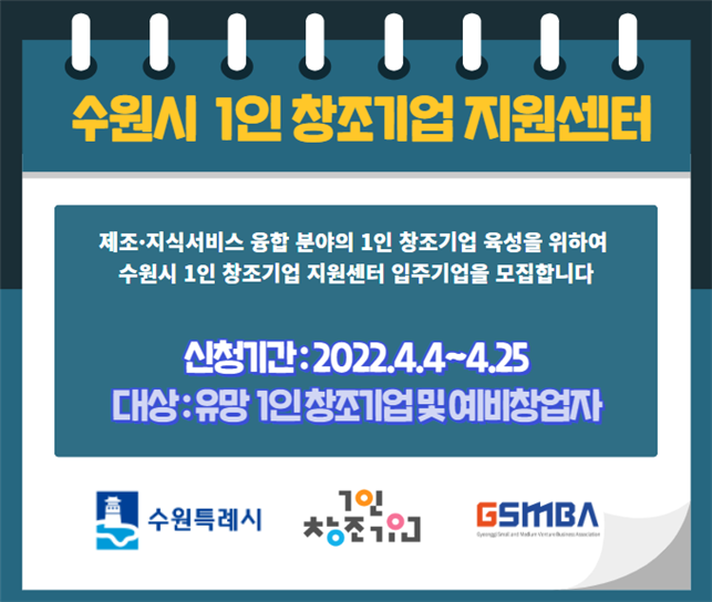 ‘수원시 1인 창조기업지원센터’(영통구 경기지방중소벤처기업청 4층)는 제조·지식서비스 융합 분야 1인 창조기업을 육성하는 기관이다. 1인 창조기업은 창의성과 전문성을 갖춘 1인 또는 5인 미만 공동사업자로 상시근로자가 없는 업체다.