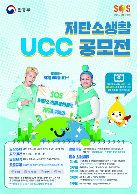 오흔진 환경부 신기후체제팀장은 “이번 공모전은 보다 많은 사람들이 기후변화의 심각성을 알고, 온실가스를 줄이는 저탄소생활에 관심을 가지도록 하기 위해 기획했다”라며 “기후변화 홍보대사 노라조의 ‘에코슈퍼맨’ 주제가에 국민들의 생각이 더해져 더욱 참신하고 재미있는 작품이 만들어지길 기대한다”고 말했다.