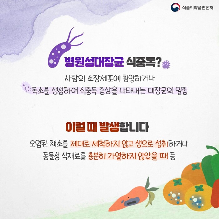 여름철에 가장 많이 발생하는 식중독은 병원성대장균으로 최근 5년 발생 환자 수 기준으로 42프로를 차지한다.